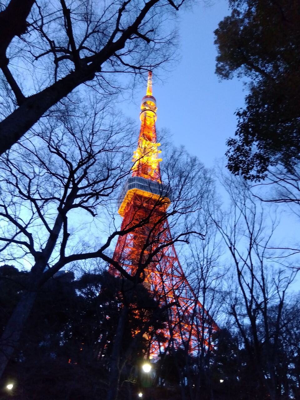 東京タワーの真下に到着したときには日が沈みました。